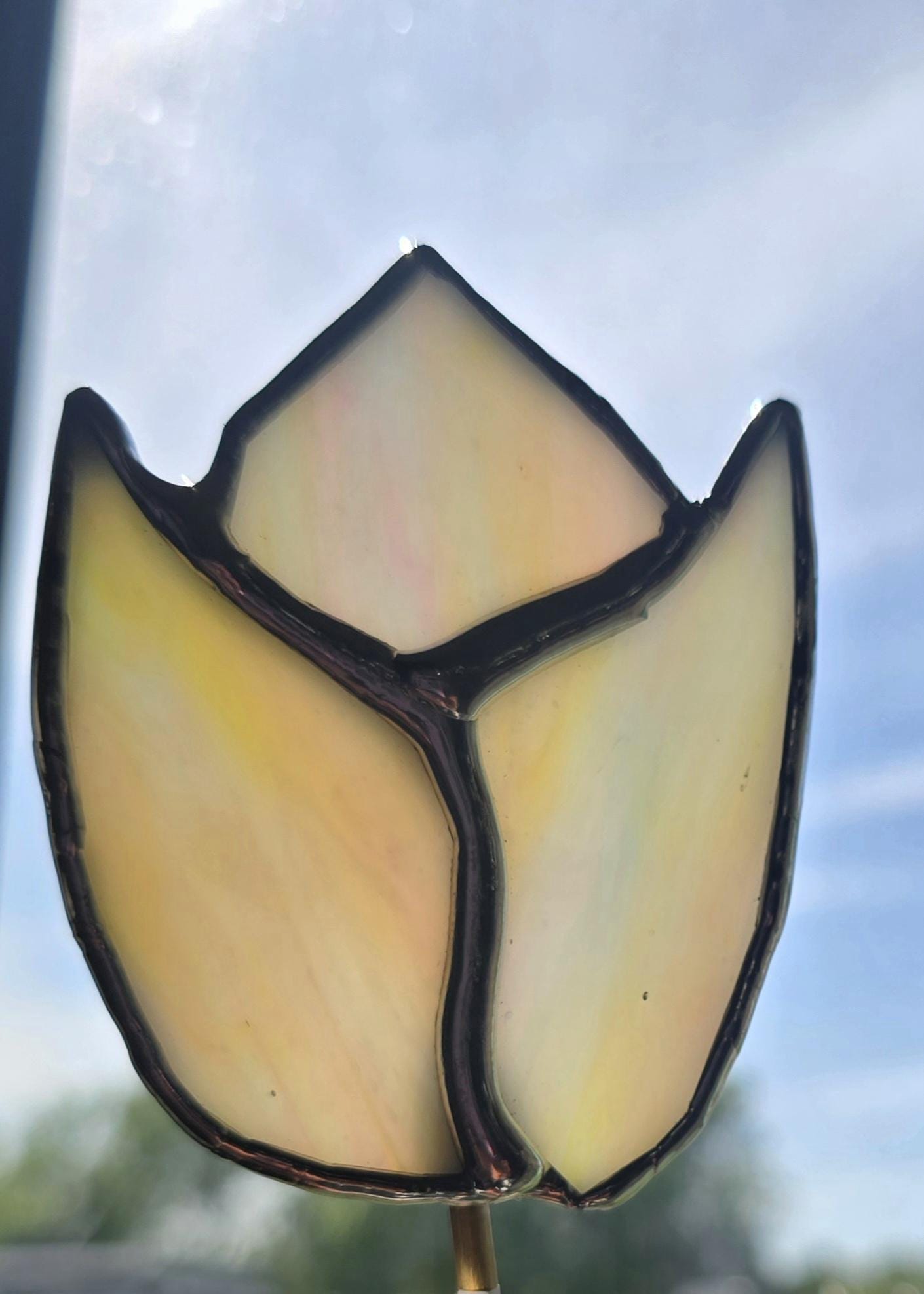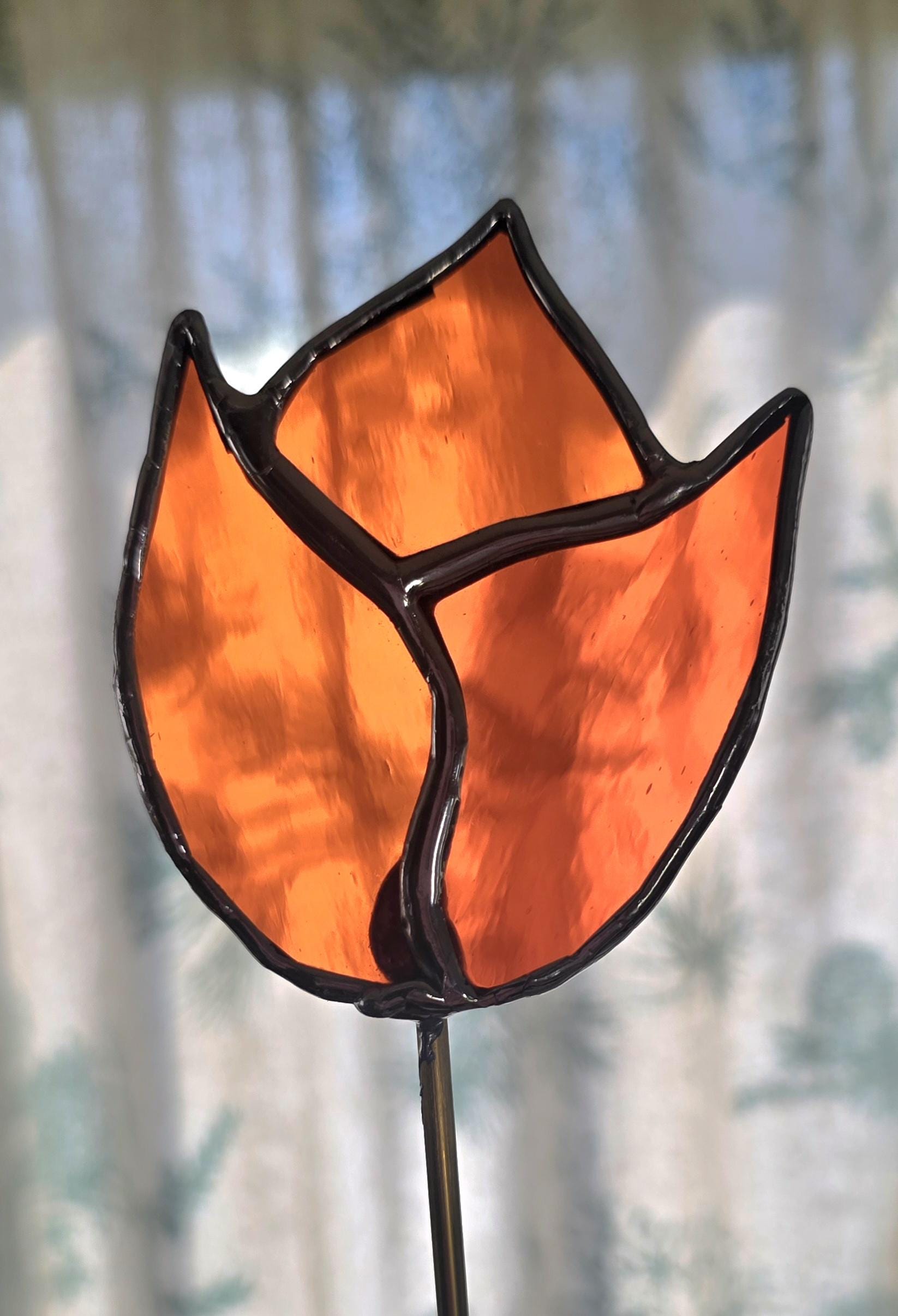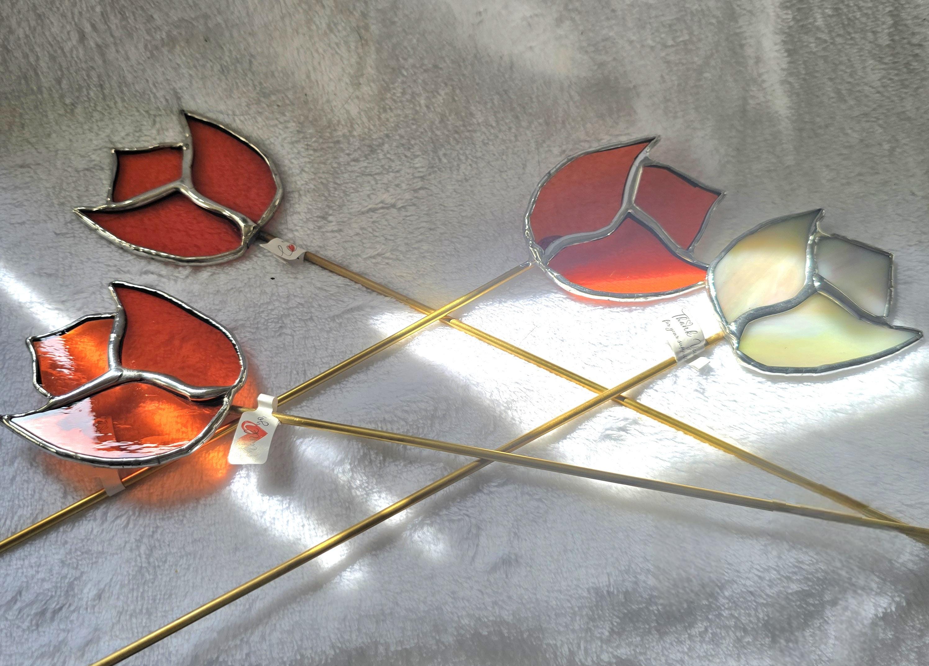 Real Stained glass tulips with brass stakes